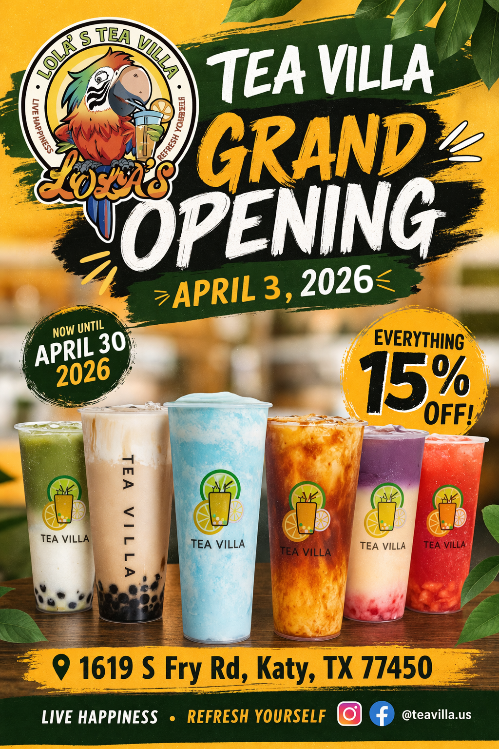 "Tea Villa is a refreshing gem in Houston’s heat! The drinks came out super fast, and both my Mango Green Tea and Oolong Tea were outstanding. Friendly service, great prices, and a spot I’ll definitely come back to!"
